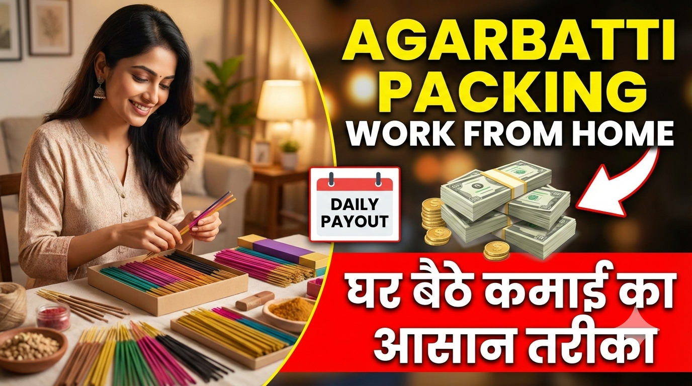 आजकल इंटरनेट पर Agarbatti packing Work from home काफी ट्रेंड में है। सोशल मीडिया, यूट्यूब और जॉब पोर्टल्स पर इसे घर बैठे कमाई का आसान जरिया बताया जा रहा है। खासकर महिलाएं, स्टूडेंट्स और रिटायर्ड लोग इस काम में दिलचस्पी दिखा रहे हैं। लेकिन क्या यह वाकई भरोसेमंद और फायदे वाला काम है? इस लेख में हम इसी विषय को सरल भाषा में समझेंगे, ताकि आप सही फैसला ले सकें।